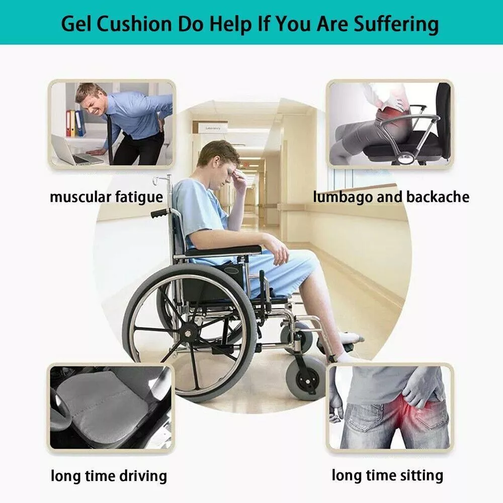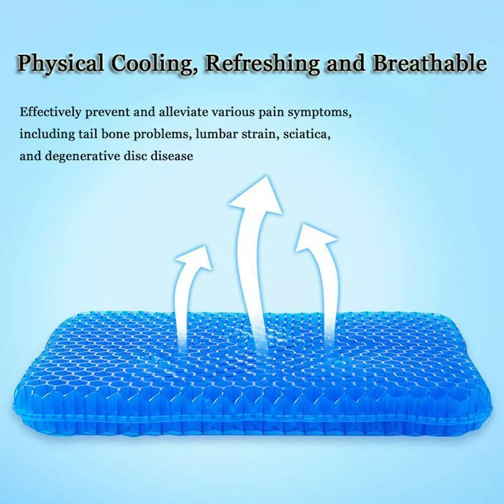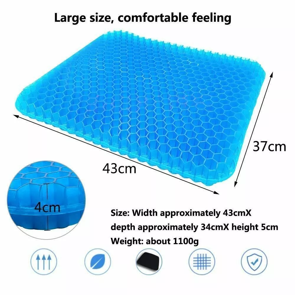 Enjoy all-day support with our double-thick gel seat cushion. Designed with a breathable honeycomb structure and ultra-flex polymer, it relieves pressure, promotes better posture, and fits most chairs. Comes with a non-slip, washable cover—perfect for office, car, home, or travel use.